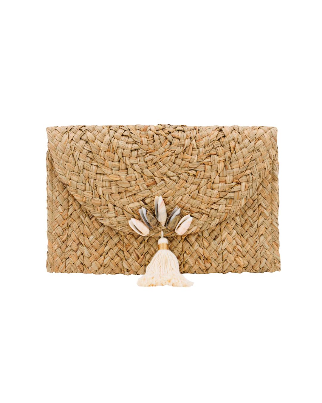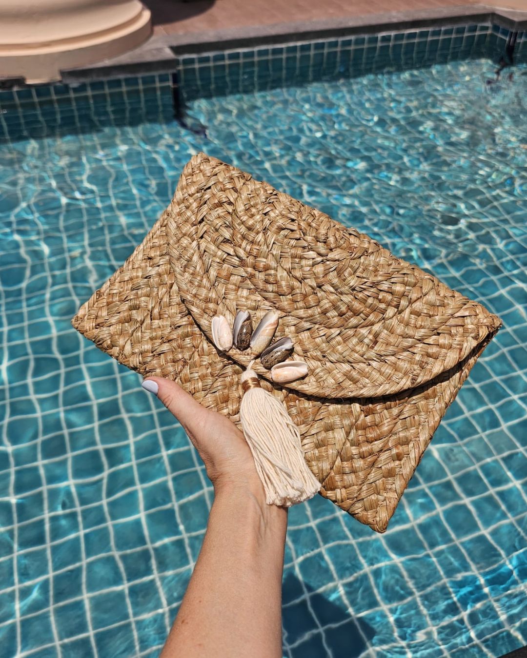Amara Clutch with five gray natural shells, to celebrate vacation days on the seaside.