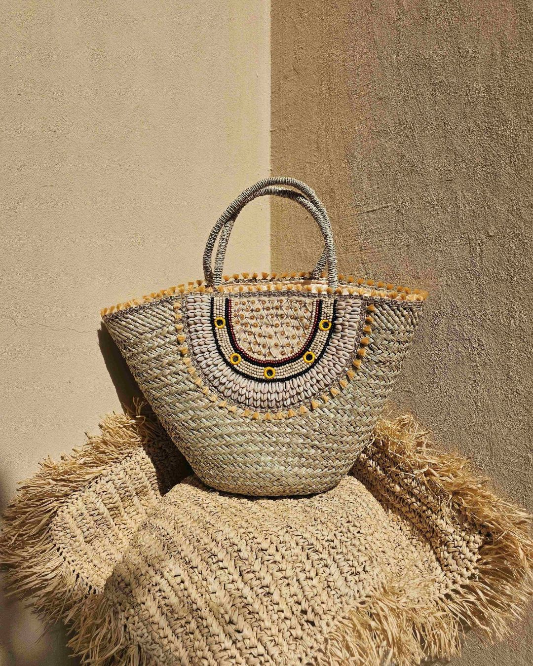 This product is handmade of natural fiber and shells – please handle with care for longer product life. Protect from direct light, heat, rain.