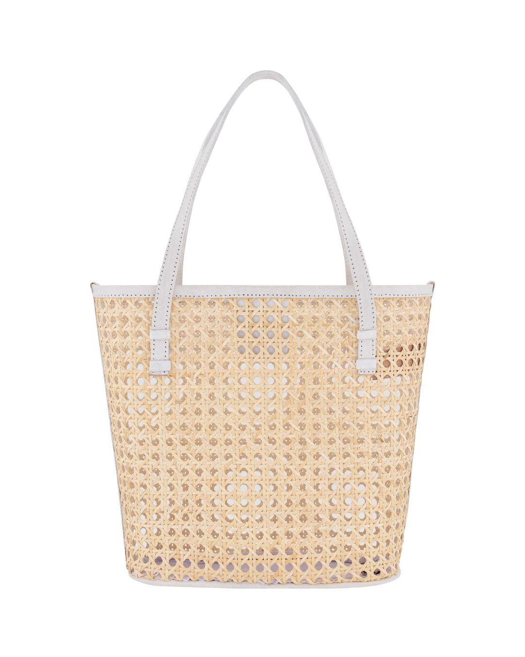 Bella Rattan & Leather Tote – Bone