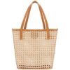 Bella Rattan & Leather Tote – Caramel