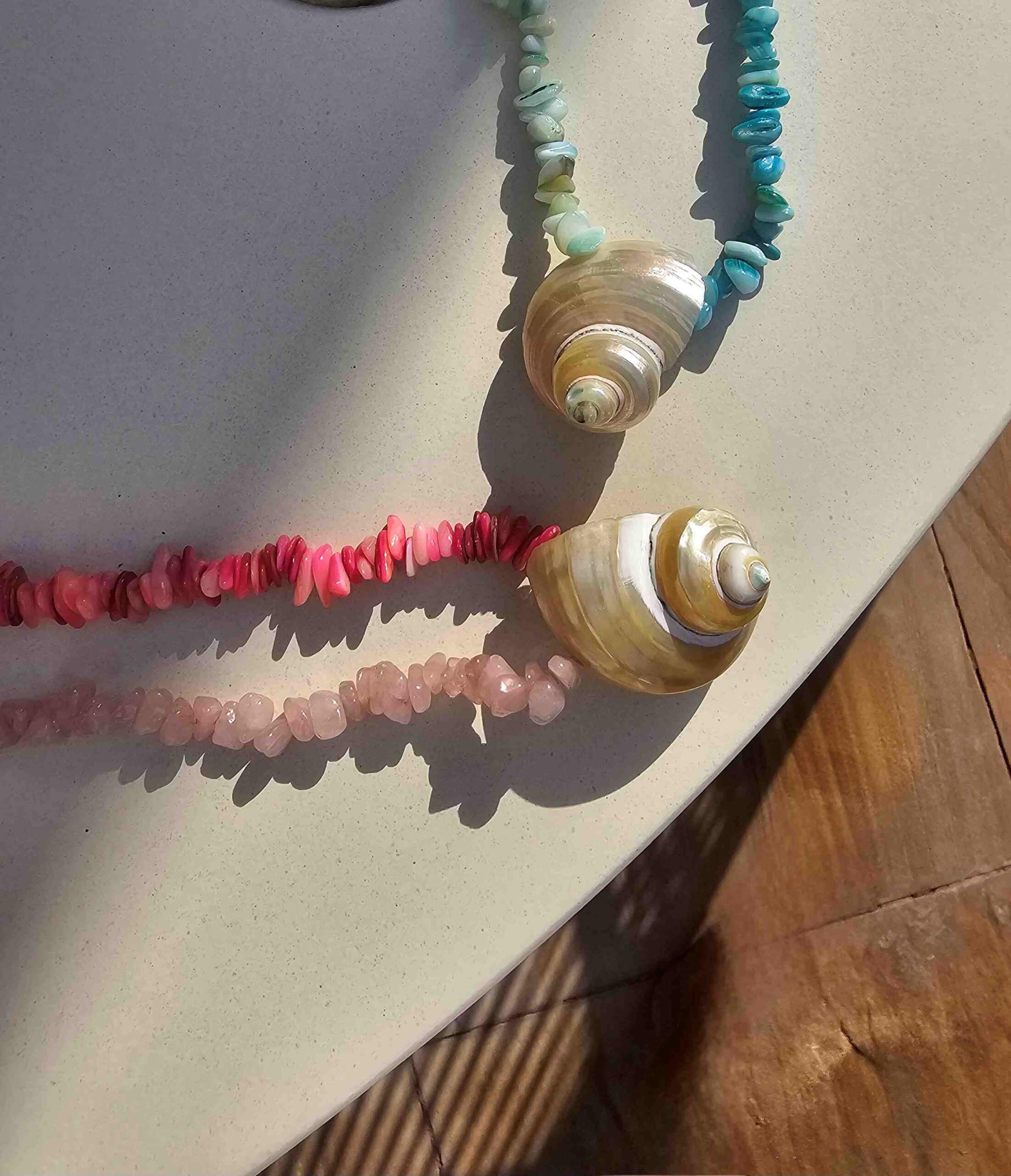 Stunning ISLA Shell and glass bead Necklace from sunny beach day to sundowners!