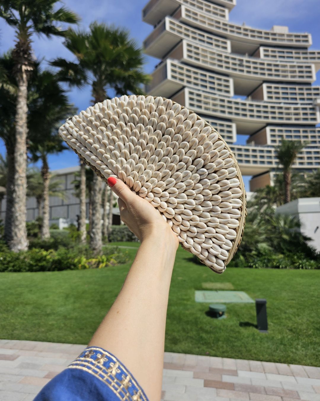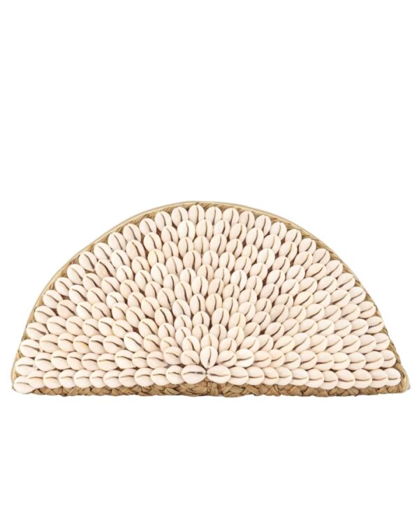 Luna is a Stunning handmade half-moon cowry shell clutch, perfect from beach to brunch.