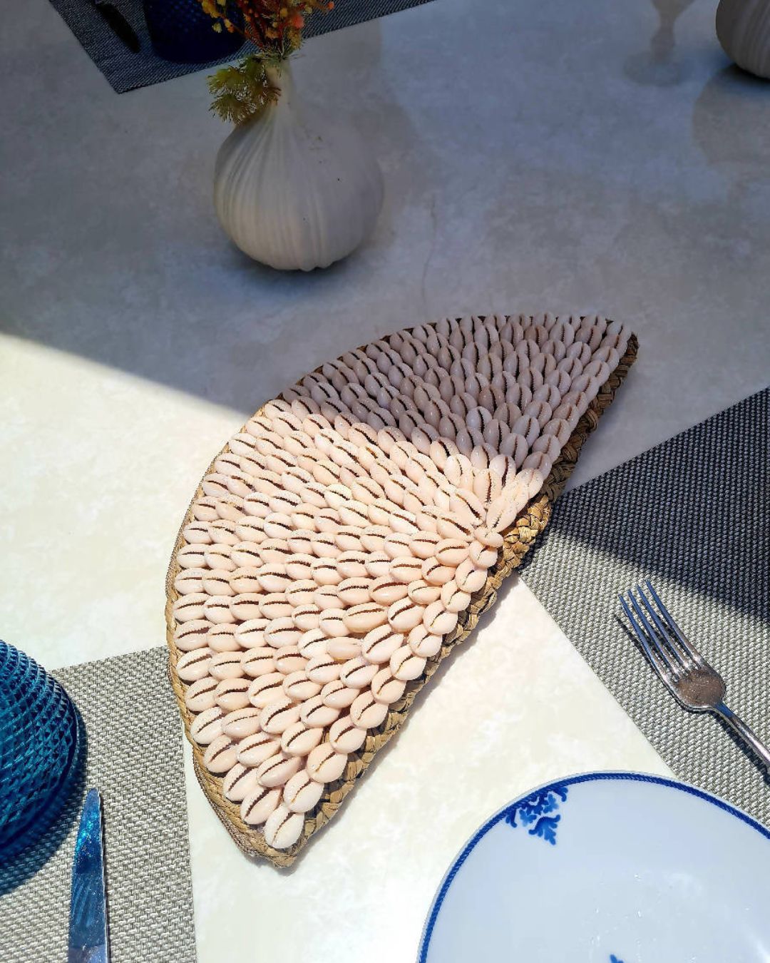 This product is handmade of genuine fiber and shells, please handle with care for longer product life. Protect from direct light, heat, rain.
