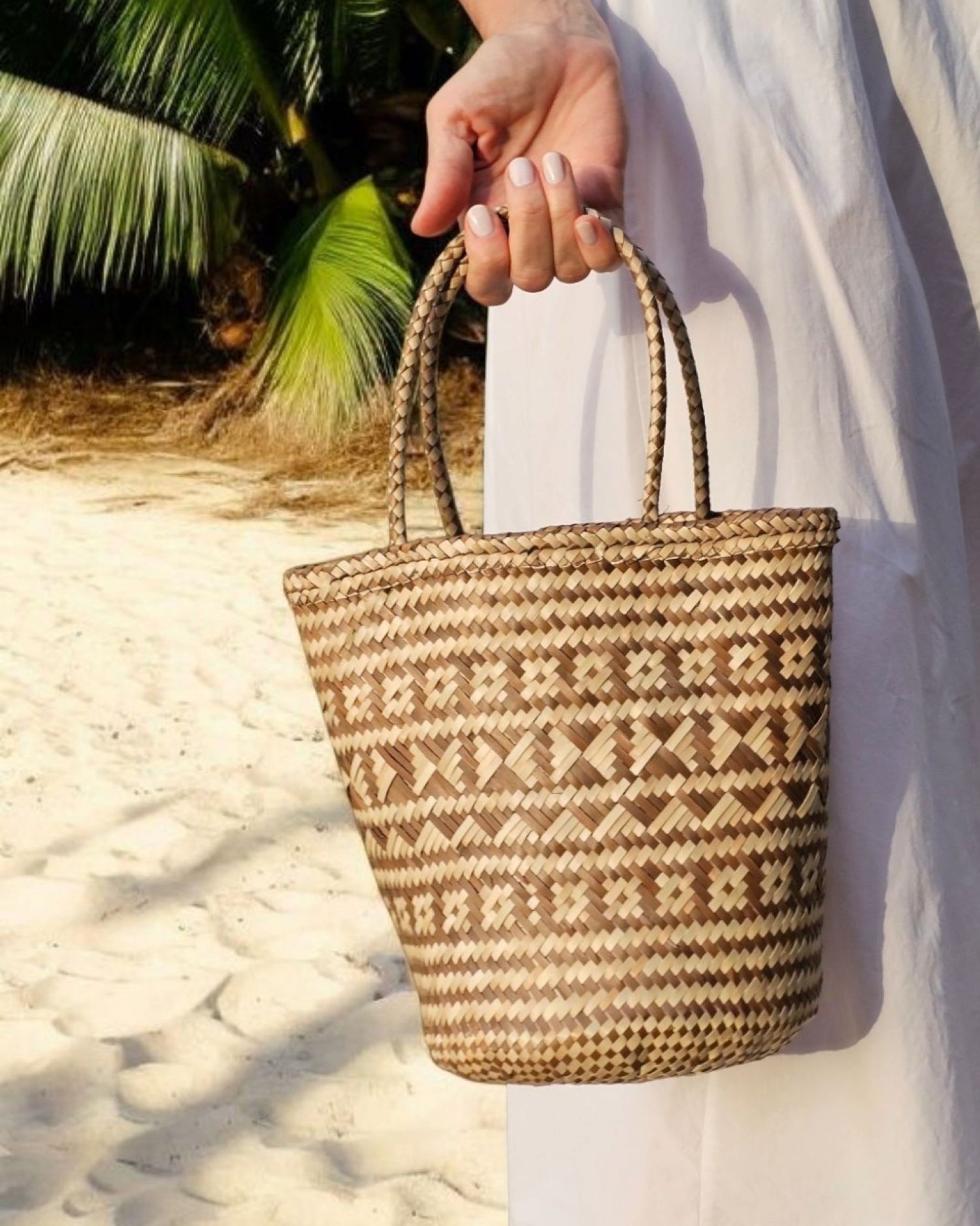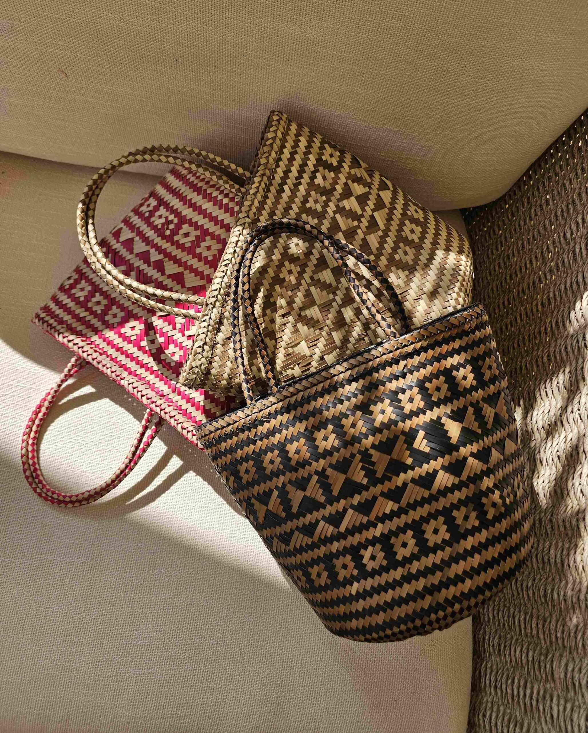 Make a seaside statement with our new Manta mini bucket, light handwoven beach bag made of two-toned natural pandan leaf. Manta is a perfect size for your phone, makeup, SPF and small water bottle. Functional and chic at the same time, this bag will make any summer outfit to stand out.