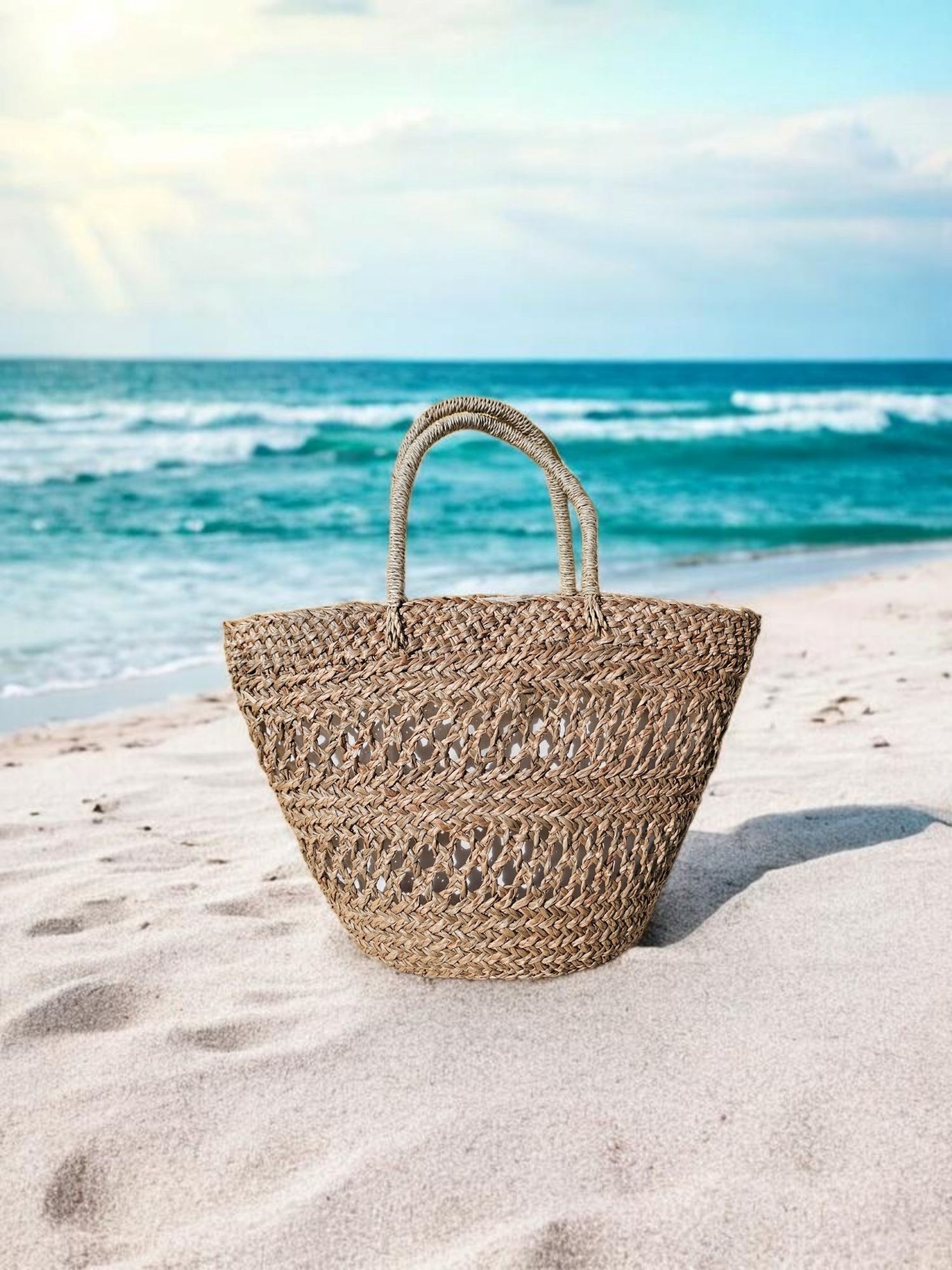 Meet the Meryl, A medium-sized beach bag crafted from beautifully woven natural Balinese straw for an effortless coastal look. Designed with roomy space for your daily essentials, it is the perfect companion for beach days, holidays, and sunny afternoons. The Meryl has a cotton-lining, pocket, and a drawstring closure. Finished with a detachable shell tassel charm, it adds a playful touch you can style your way.