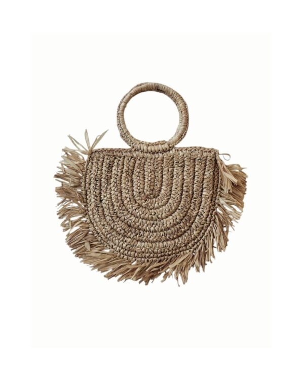 Introducing the Minka Raffia Bag —a fusion of sophistication and functionality that screams beach vacation. With its semi-circular shape and delicate fringed edges, this bag is perfect for holding your beach essentials while adding a touch of bohemian charm to your ensemble. The circular handle offers a comfortable grip, making it easy to carry while you stroll along the seashore… Whether you’re heading for a seaside escape or a tropical getaway, this stylish, handwoven beach bag is your ultimate sun-soaked companion.