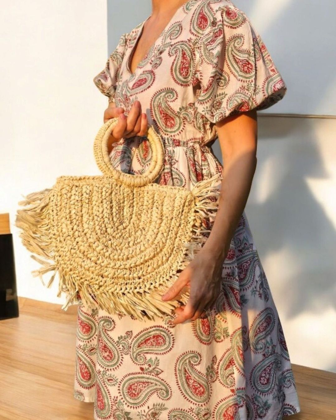 Introducing the Minka Raffia Bag —a fusion of sophistication and functionality that screams beach vacation. With its semi-circular shape and delicate fringed edges, this bag is perfect for holding your beach essentials while adding a touch of bohemian charm to your ensemble. The circular handle offers a comfortable grip, making it easy to carry while you stroll along the seashore… Whether you’re heading for a seaside escape or a tropical getaway, this stylish, handwoven beach bag is your ultimate sun-soaked companion.