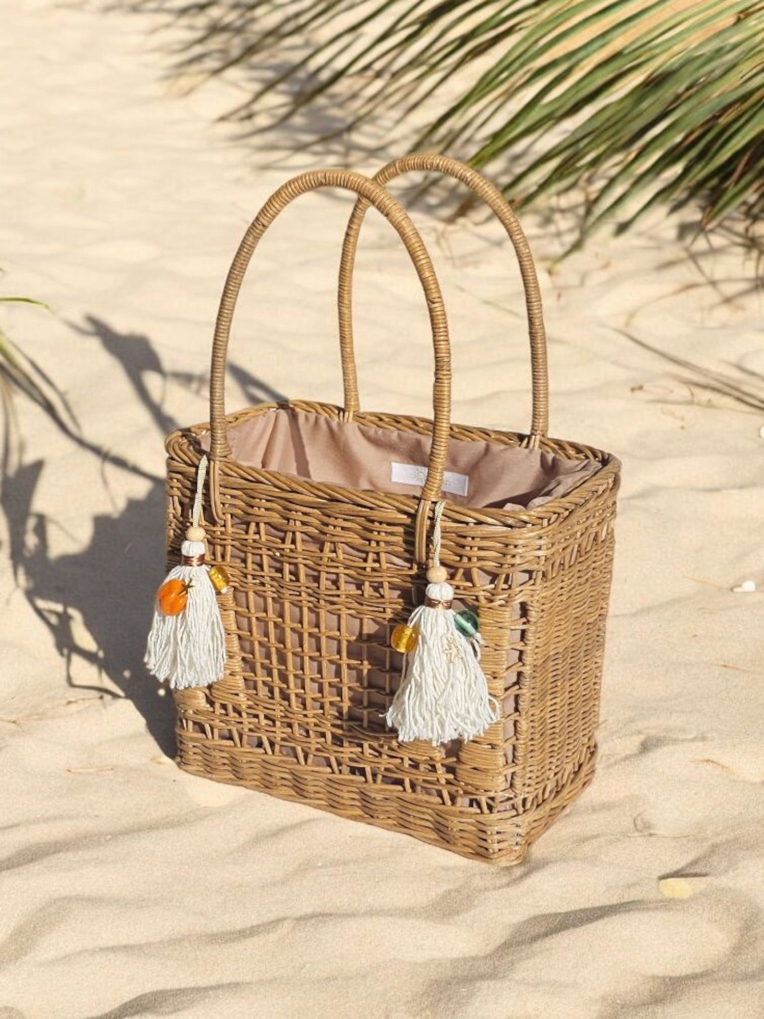 This functional, handwoven brown wicker basket is your perfect companion on your busy summer day strolling around the city or beach.