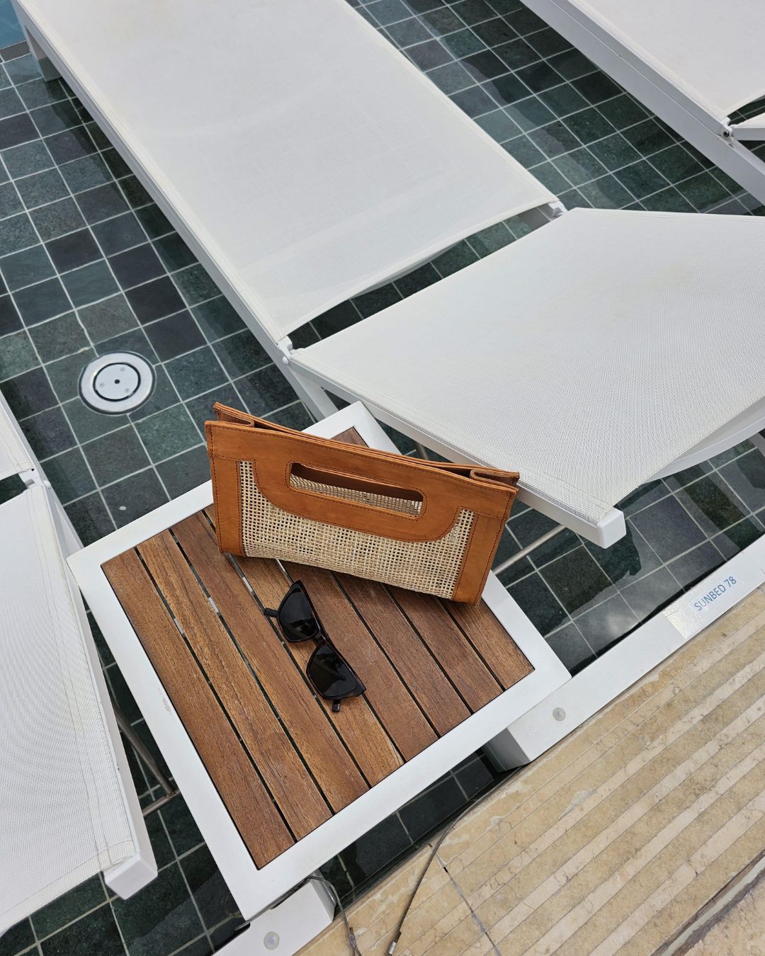 One-of-a-kind Caramel Leather and Rattan NAOMI Handbag to compliment your look for breakfast, lunch and dinner!