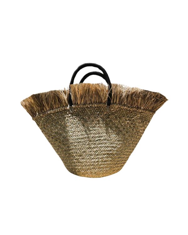 Beautifully handmade large beach tote Norah Fringe with cord-decorated handle in black. Just perfect large tote for the day at the beach or park!