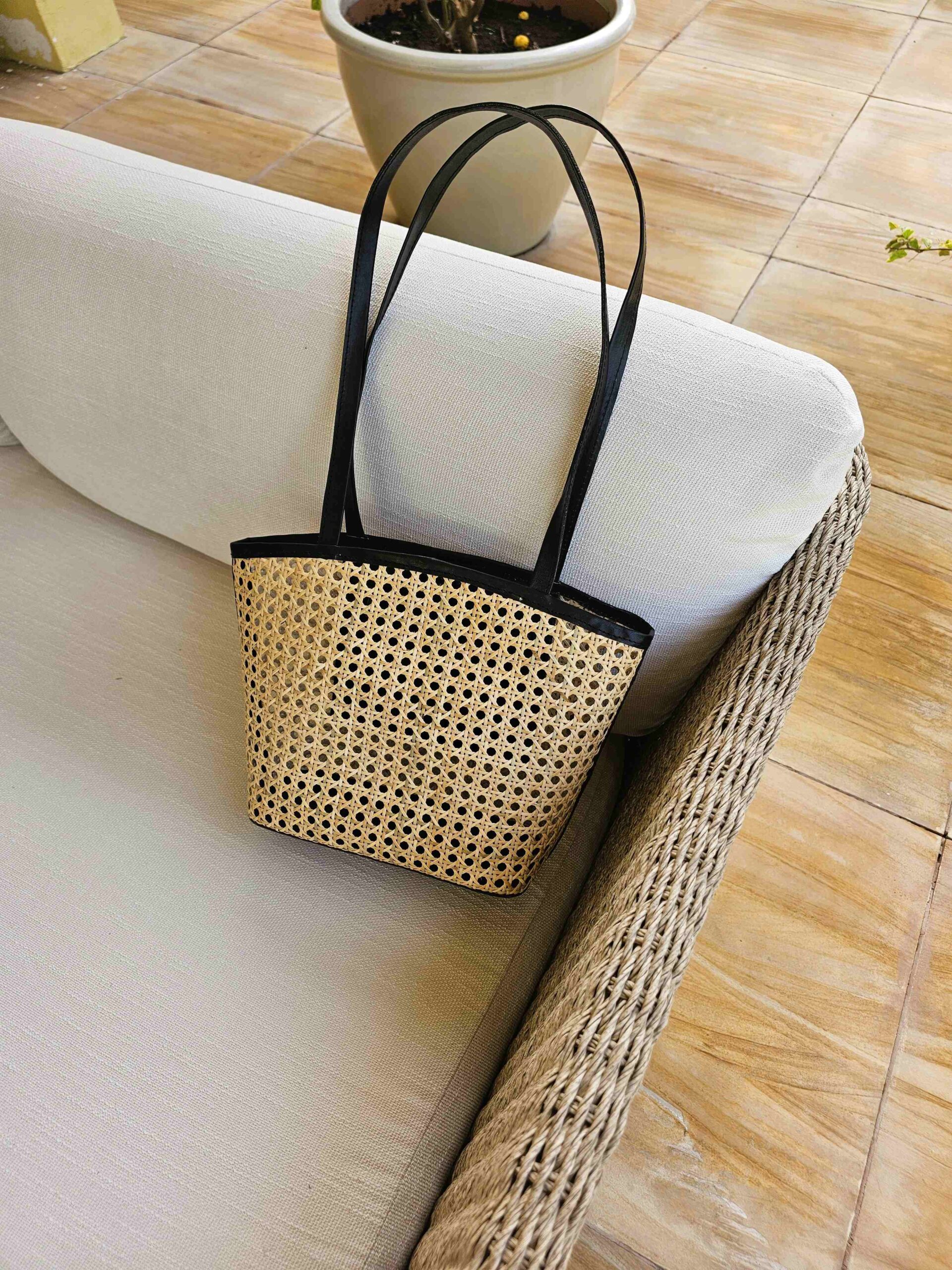 Ollie Rattan & Leather Bag – Black
