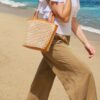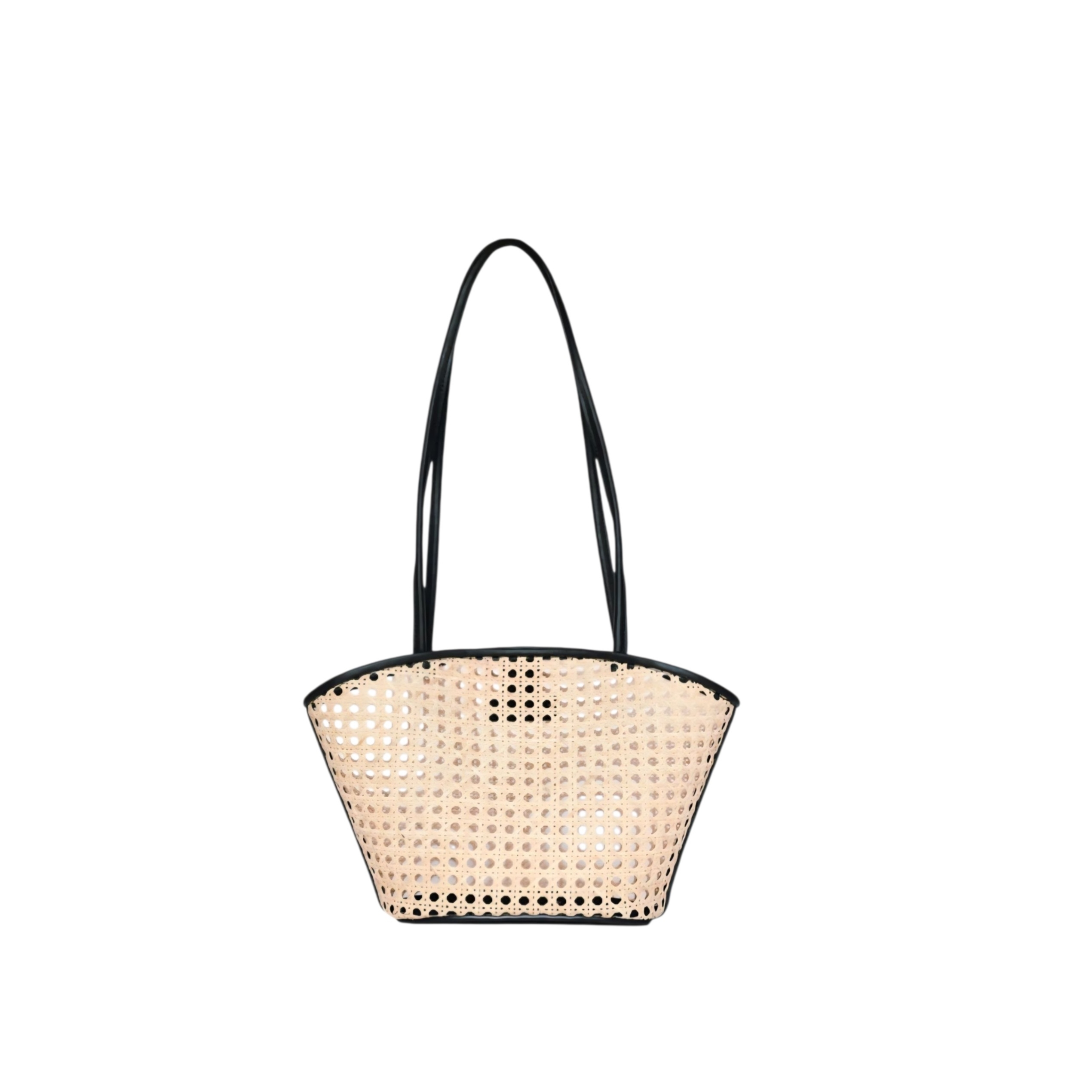 Gorgeous every day rattan bag with two black leather straps. The Ollie has an interior leather pocket with a zipper, to keep your valuables in safe. Perfect for night and day, shop Ollie in bone white, caramel brown, or black.