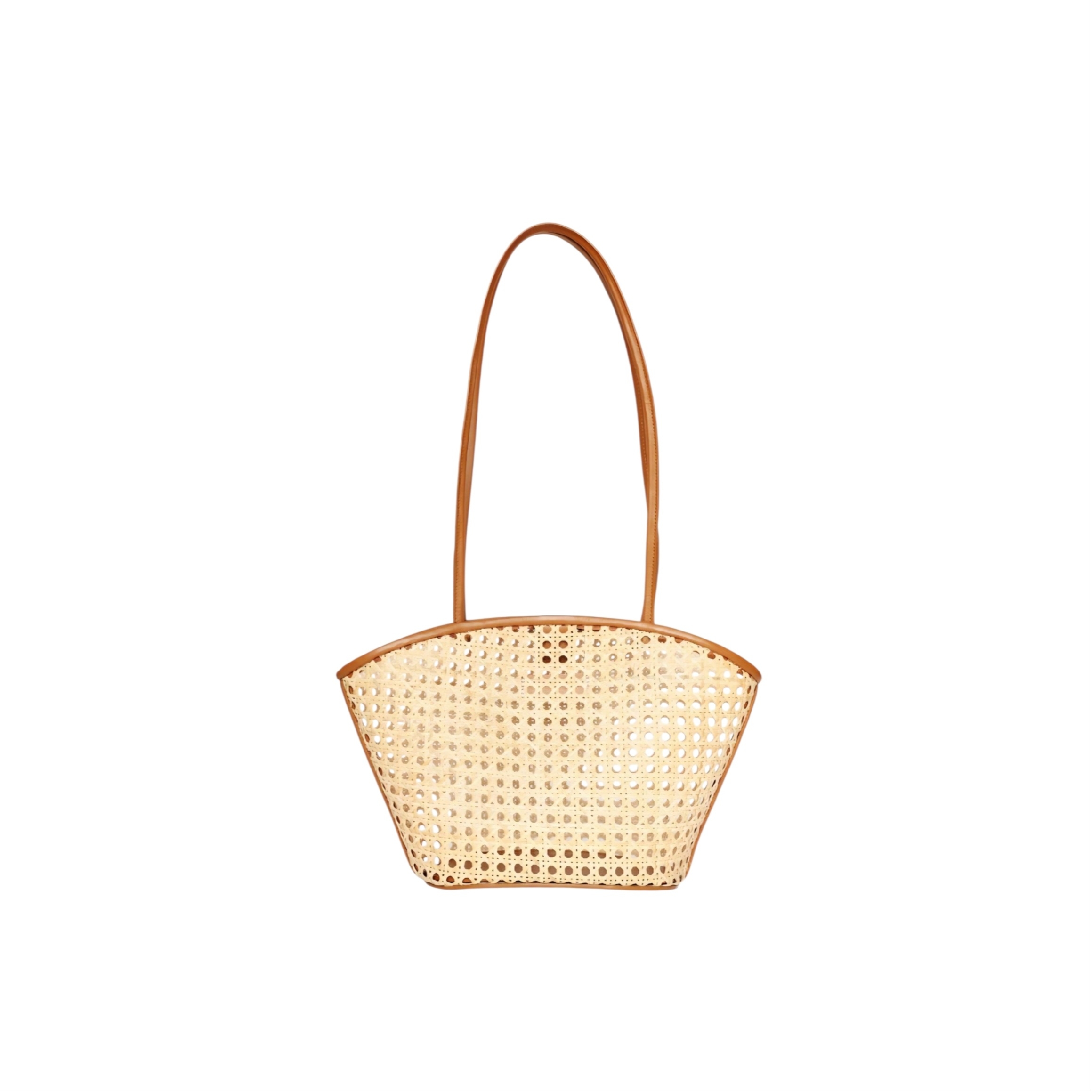 Gorgeous every day rattan bag with two bone white leather straps. The Ollie has an interior leather pocket with a zipper, to keep your valuables in safe. Perfect for nigth and day, shop Ollie in bone white, caramle brown, or black.