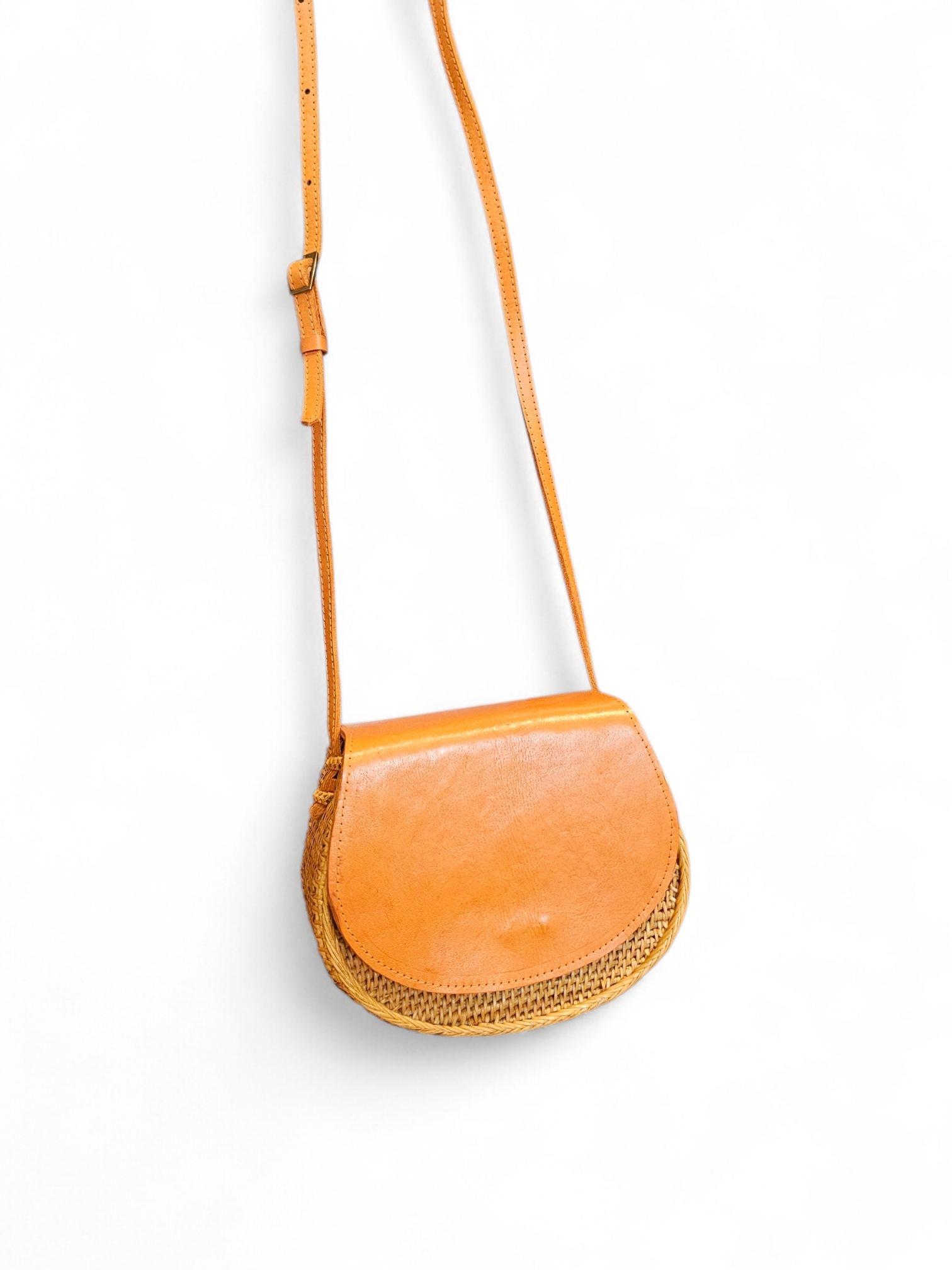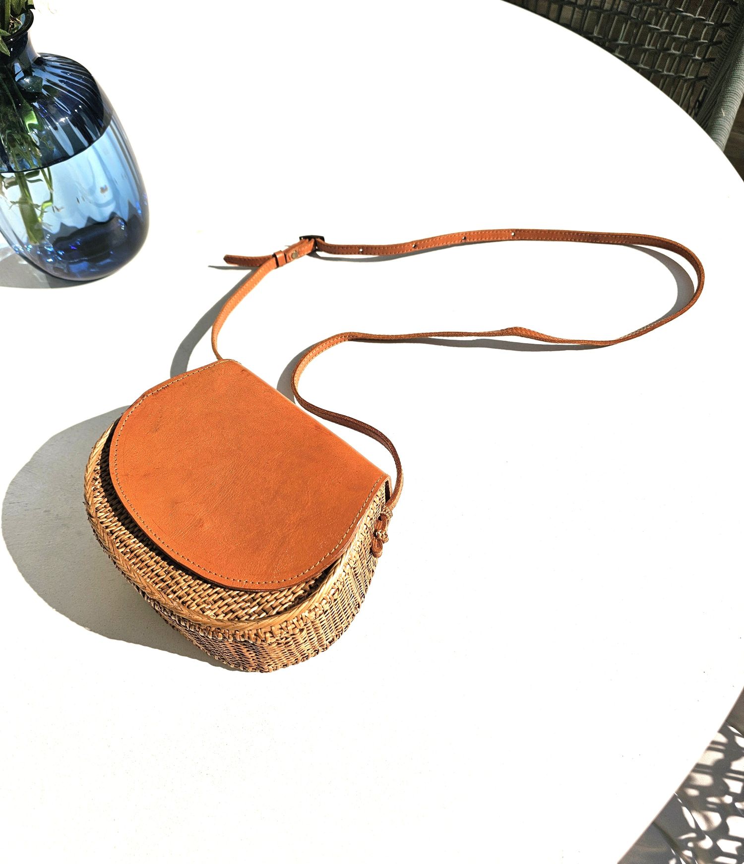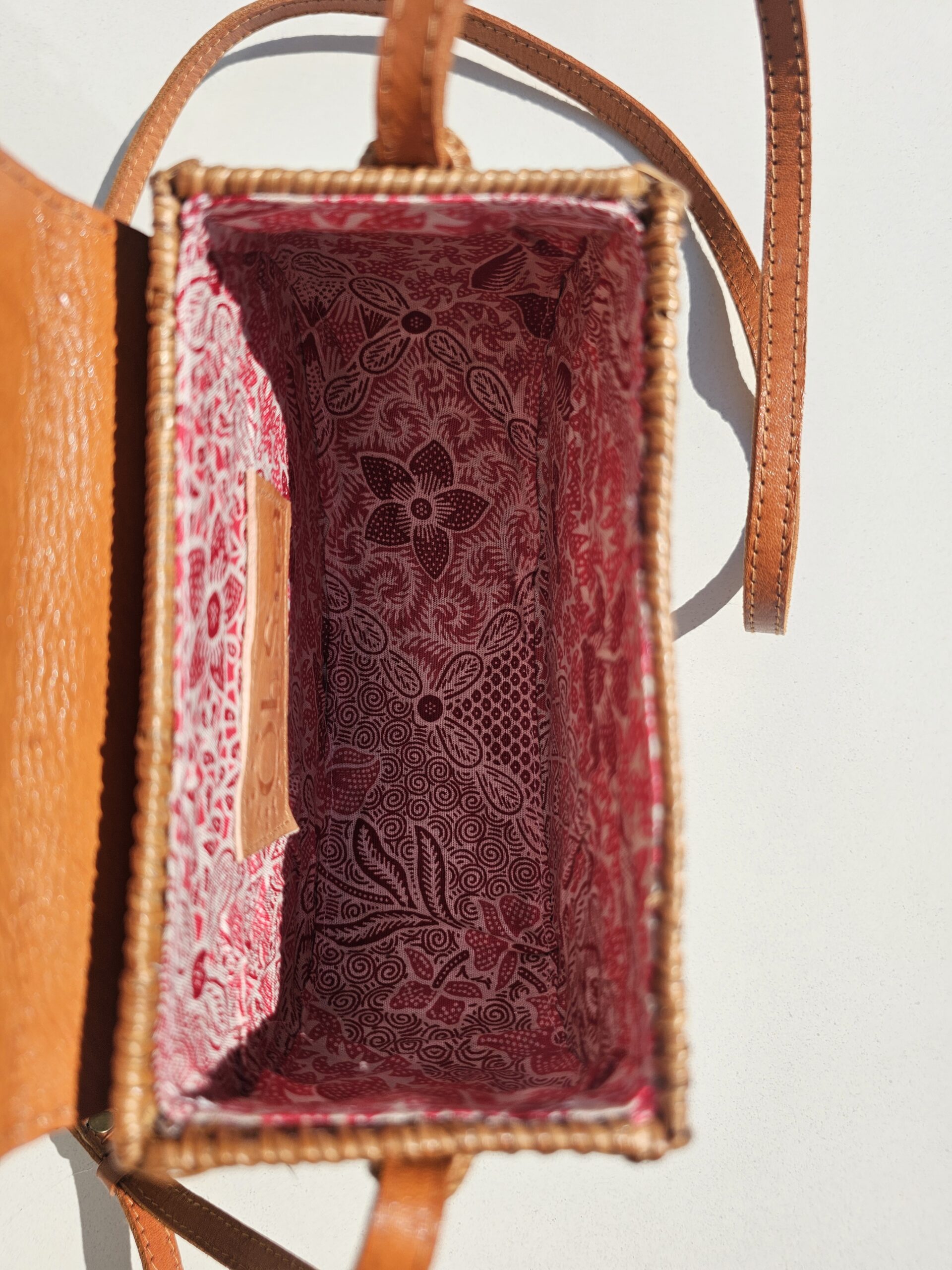 The Philippa crossbody bag is crafted from handwoven rattan and finished with genuine leather, perfectly blending natural texture with timeless style. Lightweight yet structured, it’s designed for effortless everyday wear. The compact interior comfortably fits your phone, makeup essentials, and cards. An adjustable leather strap completes the look, perfect for hands-free days and warm-weather outings.