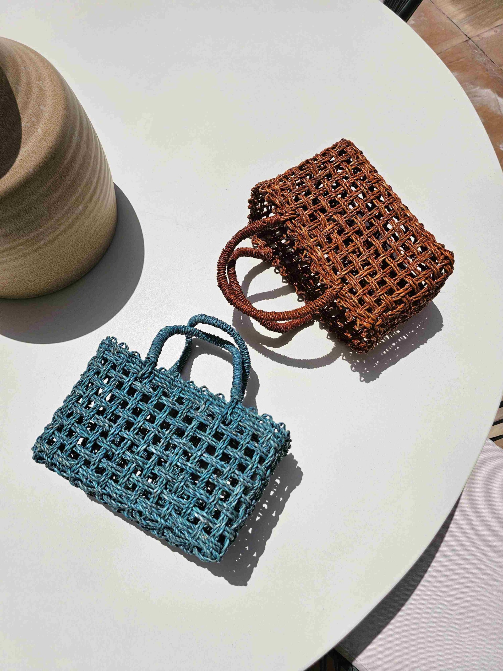 One-of-a-kind Raegan mini tote is handmade of wide-weave natural agel. Lightweight and unique, Raegan is a perfect size for your phone, make up, and more.