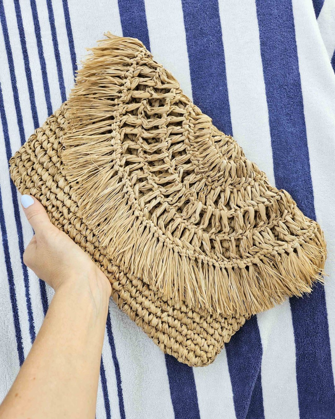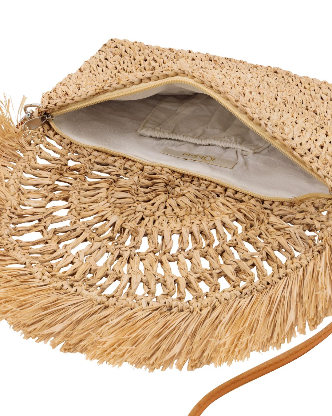 RUBY – Handwoven 100% natural raffia crossbody clutch to fit your beach day essentials in one place.